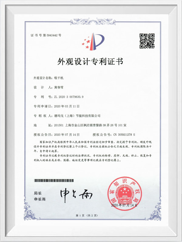En nul luftforbrugsprængende varmeabsorberende tørretumbler - Utility Model Patent Certificate