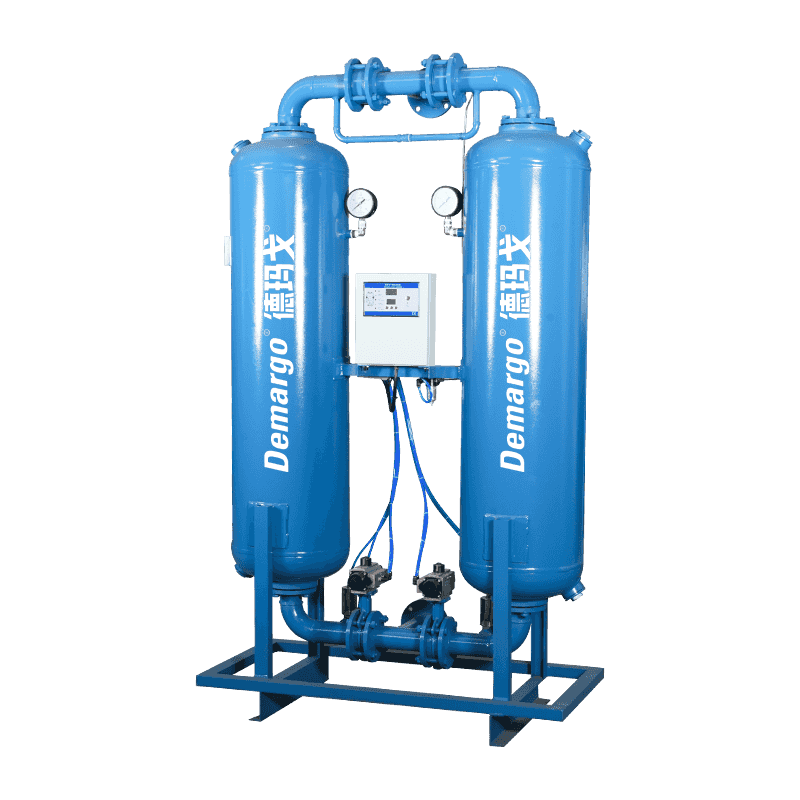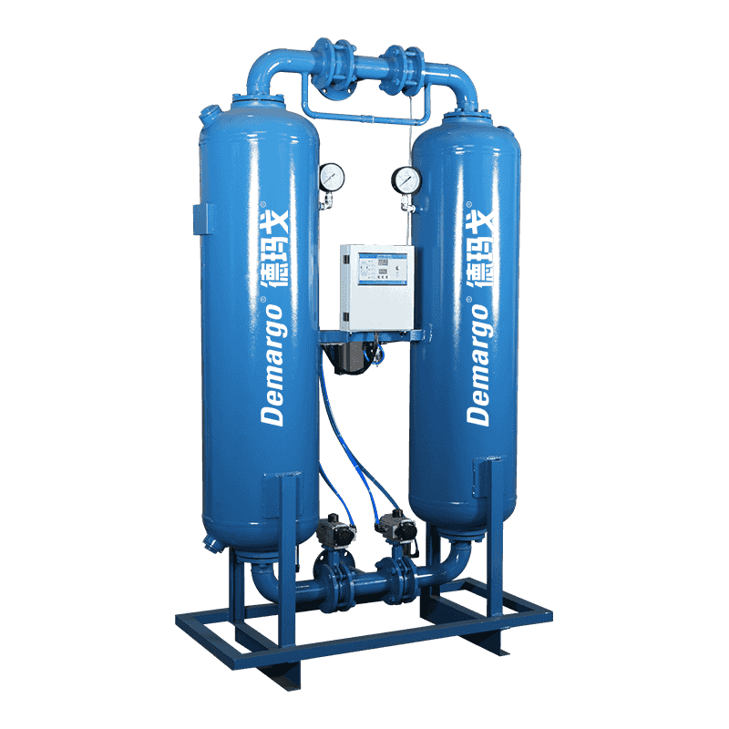 Den varmefri regenerative adsorptions tørretumbler bruger "trykvingadsorption" for at opnå tørreeffekten. Da luftens evne til at holde vanddamp er omvendt proportional med trykket, er en del af luften efter tørring (kaldet regenereringsgas) dekomprimeret og udvidet til atmosfærisk tryk. Denne trykændring gør den udvidede lufttørrer, og derefter får det lov til at strømme gennem det tørremiddellag, der ikke er forbundet til luftstrømmen (dvs. tørretårnet, der har absorberet nok vanddamp). Den tørre regenereringsgas absorberer fugtigheden i tørremidlet og tager den ud af tørretumbleren for at opnå formålet med affugtning.